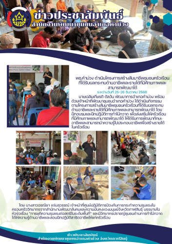 พช.คำม่วง ดำเนินโครงการสร้างสัมมาชีพชุมชนครัวเรือนที่ได้รับผลกระทบด้านอาชีพและรายได้ที่มีศักยภาพและสามารถพัฒนาได้